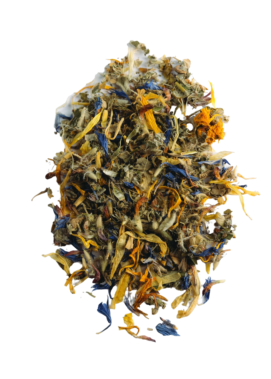 Blue Cornflower – Known for its delicate color and mild botanical character, traditionally used to add visual softness and a gentle, calming presence to herbal blends